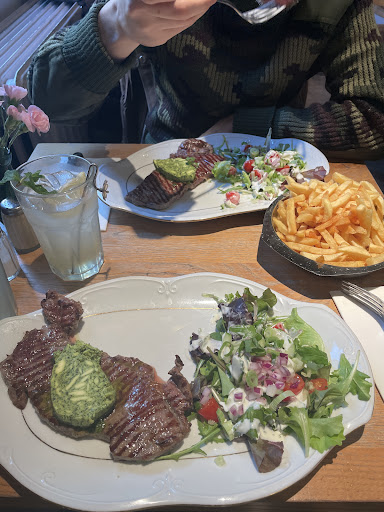 The food itself? Let’s just say it didn’t wow us. We started with their lemonade, which turned out to be far too sour for my liking, a refreshing drink shouldn’t feel like a challenge to get through. For our main course, we both ordered entrecôte, which was unfortunately chewy and lacked that satisfying tenderness you expect from such a dish. The fries were just so uninspired, seemed more like an afterthought, crisp brown tiny bits rather than the fries you expect when paying 25EU, and the accompanying salad was just… salad. Bland and unimpressive.