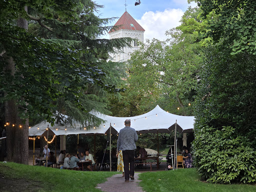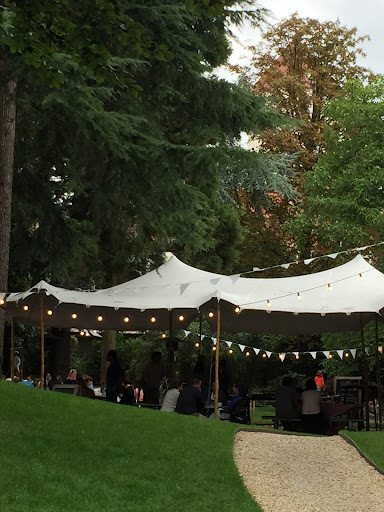 We invited about 25 guests and so were only able to reserve the smaller location (Table d'Amis). This meant our party was seated under a tent installed on white gravel and that we had no access to the garden, in which simultaneously another event was happening. Our wedding dinner however felt really like a private party: the other party was happening quite far from our location and a set of bamboo pots were positioned strategically.