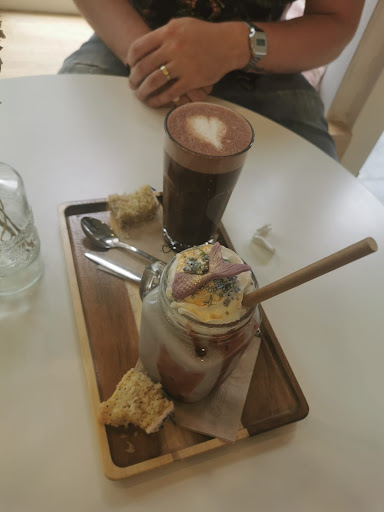 Read moreWe got there 10 min before closure (we didn't know the hours, we were just passing by) but the staff was so kind to give us drinks anyway. The drinks were AMAZING, both in taste and looks! We tried Mocha with dark chocolate and mermaid milk shake and they were so good that we came back the next day for breakfast to try the Mocha with white chocolate and the cookie milk shake. Really beautiful place with beautiful people running it and great...