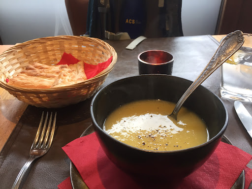 Chef Yves made us feel very welcome and prepared a delicious meal. The asparagus soup was warm, refreshing, & seasoned thoughtfully. It helped warm us up from the chill wind that had kicked up during our walk. My girlfriend’s seafood dish was luxurious, light, & full of vegetables. I had the house specialty stew and it was absolutely wonderful. The flavor was complex and deep. I was told it was cooked in a special beer which I ordered to drink along with the stew (which was as good as you woukd imagine). We wrapped up with a house made tarte tatin frangipane which was exquisite. I wish I was eating it again right now.