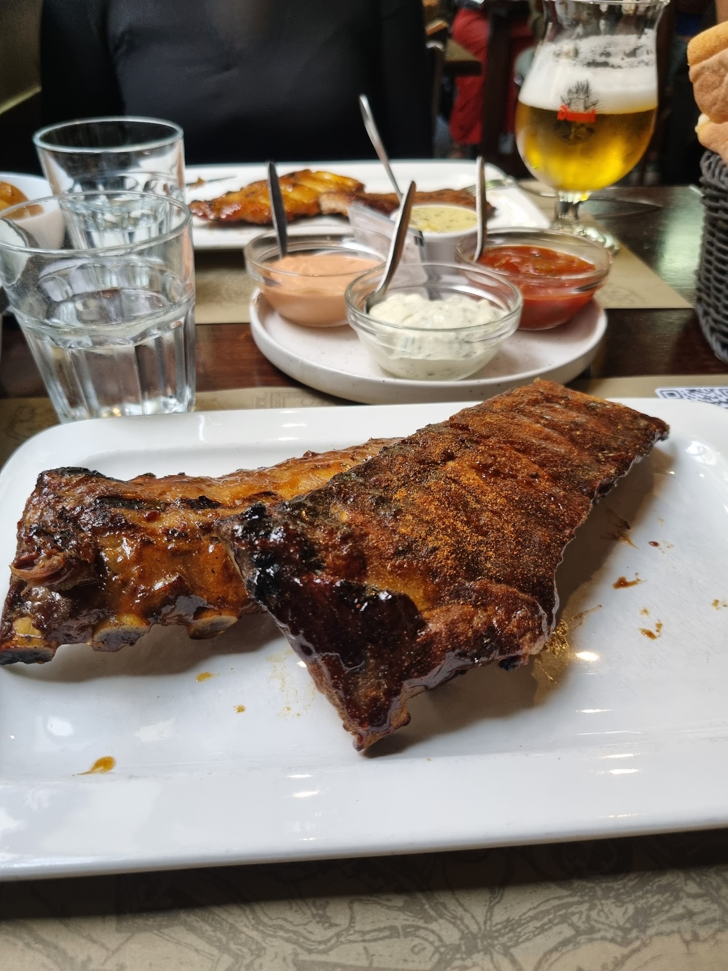 Read moreThe ribs here are fine, edible but generally overcooked and not a lot meat on the bone. The potatoes were very nice, but only one small plate of potatoes were served for 3 peoples orders of ribs (24 euros pp) We undoubtedly had to ask for more potatoes and they charged us 4 euros just for some extra potatoes. So bare in mind for the 24 euros you’re paying per person you’re not getting a lot of extras. Service was alright, but the second round of ribs took a very long time to come to the table, which means you only have the time to get one extra round before you get asked to pay the bill because your ‘shift is over’. The menu is also full of warning messages, such as: Every customer must drink something. Furthermore you’re not allowed to just have an appetizer as a main dish if you’re not extremely hungry. The waiter made an exception, but yet this feels incredibly unwelcoming. An alright experience but not remarkable, there are...