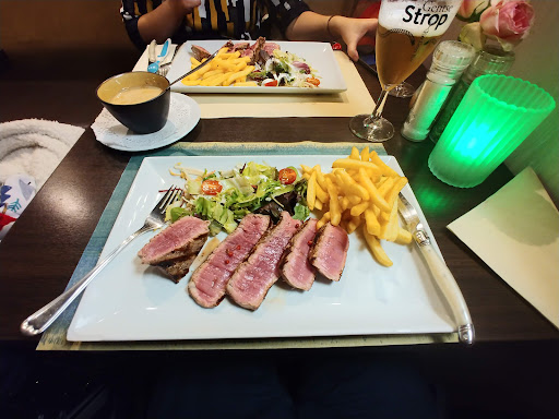 We went to Grill restaurant and tried the entrecôte and lamb chops; both were absolutely delicious! The sauces complemented the meal nicely. We ordered extra fries, and they were fantastic. The prices are a bit above average, but I recommend it for a tasty meal. The staff were very polite and friendly. However, two criticisms: the salad wasn’t great and could be improved. Also, the restrooms and sinks don’t match the restaurant’s quality; they...