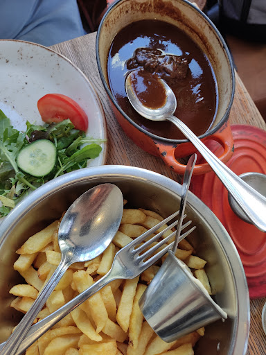 However, I am not sure they kept their eye on the task when making the dish. The flavours were decidedly unbalanced. I struggled to quite put my finger on it as there were a number of discordant flavours, but there was a bitterness that suggested they had burnt something during the making (or they added cooking wine instead of beer and didn't cook it down enough leaving a bitter taste - I'm struggling to think of other reasons for this odd bitter note) plus there was a sourness and sweetness that were distinctly separate and strangely clashing on the palette. On top of this, the meat was chewy and slightly rubbery. This was not how stoverij is supposed to be and hints at rushed cooking of a slow dish, cheap ingredients (this is a presumed possibility, not a fact) and/or poor attention to the process. My partner was happy, but likes sour and bitter flavours. We followed this up with stoverij the next night at another establishment with Belgian friends and even my partner found a massively improved quality, flavour and texture compared to the stoverij served at De Rechters - it was like night and day. The flavour at De Rechters was not smooth, with clashing notes and the meat was not as tender as it should be. Stoverij is not a technical dish and is not easy to mess up, but somehow they managed it. I'm not going to say that the stoverij here is always like this, as it could have been just a single batch, but I have eaten stoverij many times, it is a simple dish, and I was sorely, sorely disappointed.