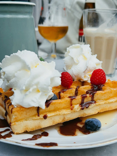 We ordered sweet Sessile waffles with toppings and a Leonard pancake with a savory addition. Both dishes were delicious and perfectly cooked. The ambiance was enhanced by the lovely French chanson playing in the background, creating a charming atmosphere for our lunch.