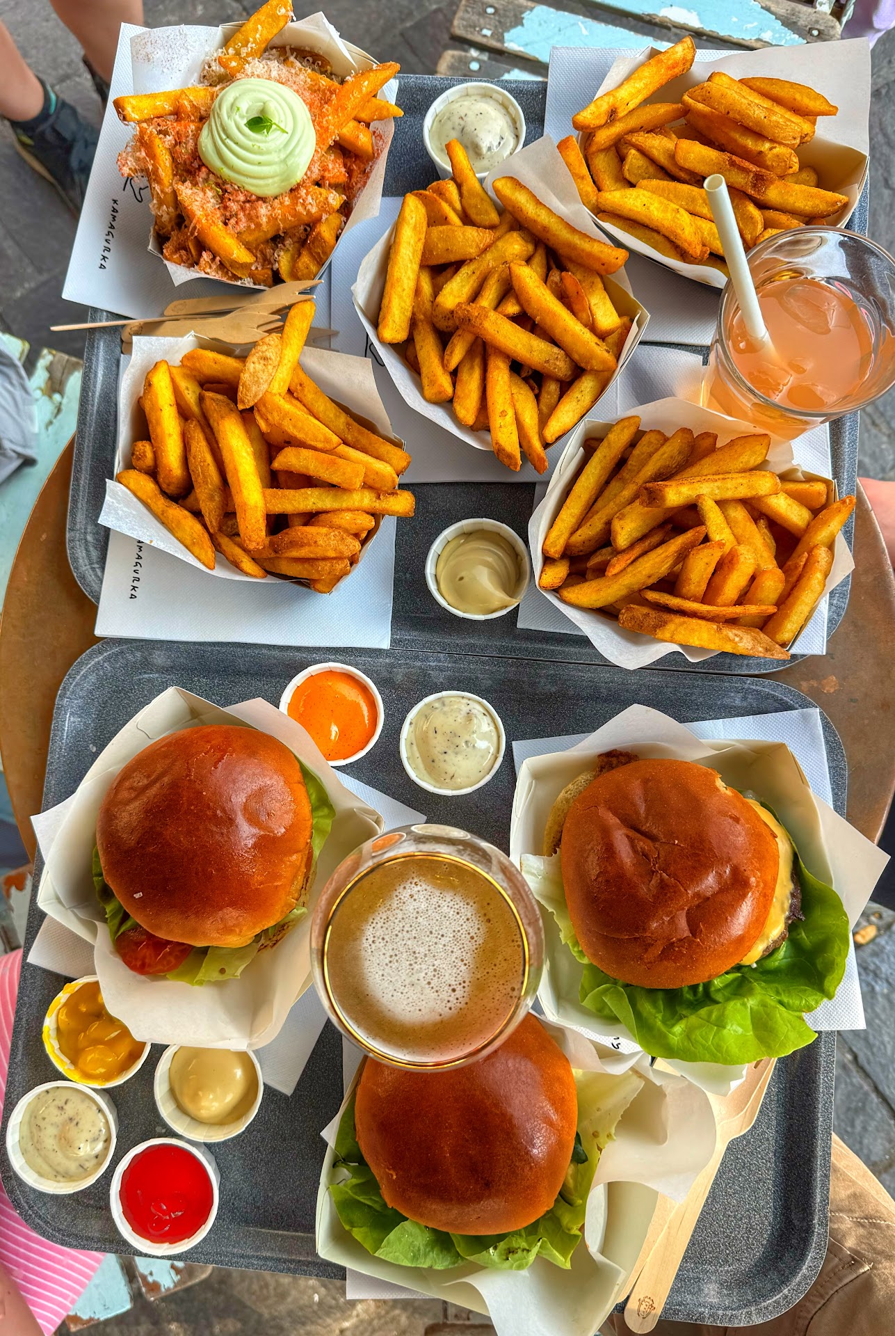 Read moreWe were in Ghent today and Belgian fries are of course a must. There was a long queue outside the "Frites Atelier". Always a good sign when there is something that costs money. So, we decided to stop there on the way back from our sightseeing tour. We got the last table outside and ordered inside at the counter. The waiters were friendly, helpful and patient with our menu choices. We ordered Frites & Homemade Sauce, Frites Special Parmesan & Basil and Cheddar Cheese Burgers. The fries were delicious, crispy on the outside and deliciously potatoy on the inside. The sauces were also delicious. We had mayonnaise (classic), ketchup, truffle and more. All super tasty. It tasted really homemade. The burgers were super juicy, topped with fresh ingredients, awesome cheesy and slightly spicy burger sauce - simply great. The bread roll was not soggy, which was a miracle considering how juicy it was. We were lucky that we arrived when it wasn't very busy at the counter, but we would have queued up...