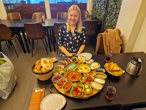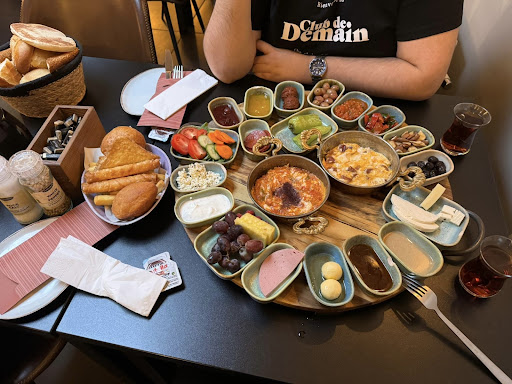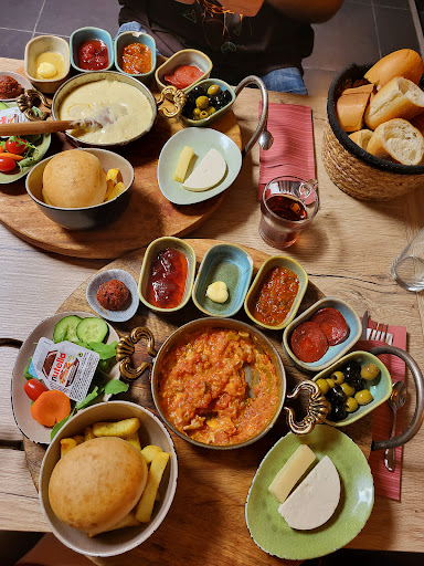 Read moreReally nice place! It's a bit like Turkish mezze, but then for breakfast. You get a little main dish surrounded by many little side dishes, and many different types of bread; a real feast for gourmets! Also a large tea pot is included in the set. The taste is naturally good, as one could expect from a Turkish breakfast place. The price is very reasonable, certainly when comparing to those Lebanese restaurants in Ghent that sell their tiny side dishes at 9 euro per piece.