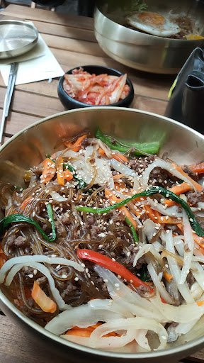Japchae: I can't find another japchae here in Belgium, so this is my first japchae here. I found it good, the taste has a balance between the saltiness and the sweetness. I like it especially when I added kimchi on it. It even taste better ☺️. Score 7.5/10