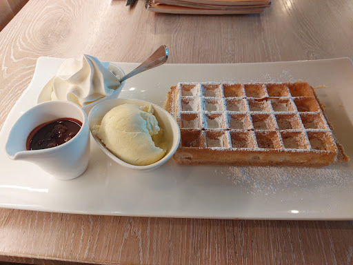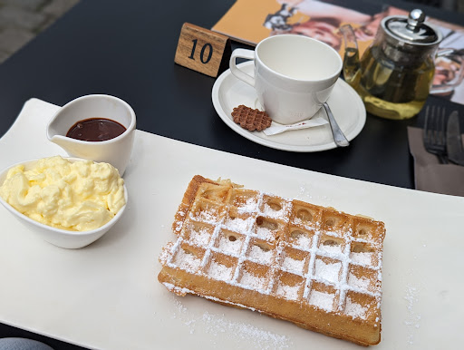 The waffle arrived cold. I raised that when paying but the answer I got is that the Bruxelles type gets cold quickly. Ok.. it was a sunny day and my camomile stayed hot a good while.