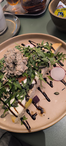 We bestelden een salade met burrata en een bruschetta met burrata, tomaten en toast, samen met drankjes. Het eten werd redelijk snel geserveerd en viel zeker in de smaak: de kwaliteit was hoog en de gerechten waren goed gekruid. Wat minder prettig was, is dat de drankjes gelijktijdig met het eten werden geserveerd, waardoor we hier wat langer op moesten wachten.