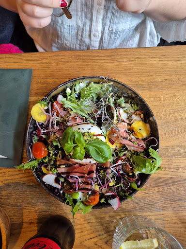 We waren vandaag met vier vriendinnen en een baby voor een brunch. We hadden van tevoren gebeld om te vragen of er een babystoel beschikbaar was en of we met een buggy konden komen. Bij aankomst bleek de babystoel bezet te zijn en we kregen een tafel aan de bar, waar geen ruimte was voor de buggy. We hebben de buggy maar tussen de tafels gezet. Vervolgens moesten we 25 minuten wachten op een koffie. We hadden aangegeven dat een van onze vriendinnen later zou komen en wilden alvast ons eten bestellen omdat we honger hadden. Toen ze aankwam, kon ze echter de brunch niet meer bestellen, terwijl wij dit niet van tevoren werden verteld. We hadden onze gerechten nog niet gekregen, dus een extra portie leek ons geen probleem. Ook hadden we drie chocoladekoeken besteld, maar er werd er maar één geleverd, met de uitleg dat de andere twee nog in de oven zaten. Dit kan kloppen, maar na zo lang wachten was dit frustrerend. Uiteindelijk kregen we er nog een, maar de derde werd weer vergeten.