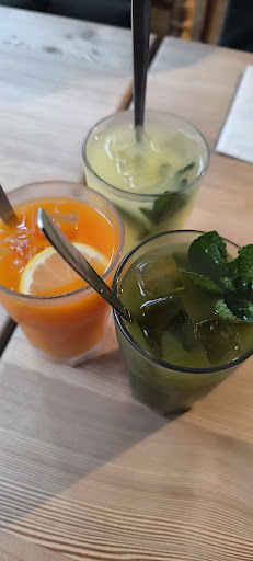 The food is good, however the portions are at the small side. The price is kind of expensive. A big fresh juice costs more than 5 euro.