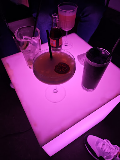 I chose this bar because of the vaporwave interior and atmosphere, however I feel it could be amped up a bit, the walls feel empty and generally the place feels a bit bleak if it makes sense. Seats and flooring feel out of place. I have ambivalent feelings about it, I like the overall style and feeling but e.g. the wires going on the floor feel a bit cheap and out of place. Imo it could be more kitsch. Lots of novelty drinks which could be fun to start the night, but I was surprised of the small range of classic drinks were on the menu. Music is pretty meh but there's no place to dance anyhow. We visited on a Friday night and there was just 1 table empty so I recommend to give them a ring to book a...