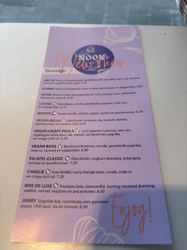 Read moreIk bestelde bij Noon telefonisch 70 broodjes voor onze studiedag. Ik kreeg een uiterst vriendelijke en vlotte dame aan de lijn. Krissy, stond mij met raad en daad bij voor de juiste mix aan broodjes. Bevlogen en vrolijk vertelde ze me hoe ze dat zou presenteren en laten leveren. De broodjes werden geleverd door Cargo Vélo. De broodjes werden gepresenteerd op plateaus, die versierd waren met hartjessnoepjes... zalig ! De broodjes waren op voorhand in 2 gesneden en rijkelijk belegd. Bovendien smaakten ze ook HEERLIJK! Dank Krissy (en zus) voor de toewijding . We proefden dat in je broodjes . We komen...