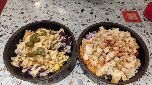 RUBA Gent in Ghent offers fantastic warm salad bowls that are both delicious and incredibly convenient. We thoroughly enjoyed the Chicken Beans and Sweet Rustic Chicken. The Chicken Beans featured perfectly roasted chicken, organic brown rice, roasted potatoes, kidney beans, corn, red cabbage, and a delightful honey mustard dressing topped with jalapeños. It was hearty, flavorful, and comforting. The Sweet Rustic Chicken was equally impressive, with roasted chicken, white Persian rice, seasonal salad mix, Parmesan, cherry tomatoes, carrots, apple, red onion, and a wonderful sweet chili dressing, finished with chili flakes, croutons, and roasted peanuts. It offered a great blend of textures and sweet-savory flavors. Both bowls were served warm, with incredibly fresh ingredients and generous portions, making them a very satisfying meal. At 13-15 euros per dish, they offer excellent value. The ambiance was excellent, and the service was quick and friendly. We especially loved the convenience: ordering online from our table meant our food arrived in just 5-10 minutes! For a healthy, delicious, and effortlessly convenient dining experience in Ghent, RUBA Gent is a highly...