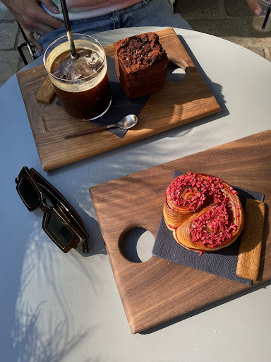 Second topic is price. They charge 1.5 euros for ice! You also have to pay extra 1 euro if you dine in - and I wouldnāt say that the atmosphere is worth it. They serve pastries on beautiful wooden boards, but you just seat in the middle of the street, without any coziness or comfort. The tables inside donāt look much more comfortable either, as the space is too tight.