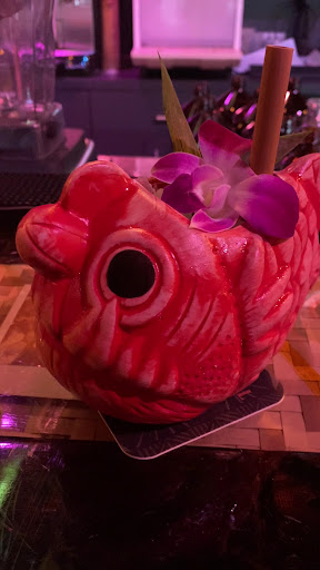 My wife and I are visiting from San Francisco. We are wearing matching tiki shirt and dress. There is one guest seated in the middle of the bar. The bartender has set up 2 large cauldrons at the far end of the bar and appears to be milk clarifying something. Strange that he is doing this in the front of guests during a shift, but OK. So we start to sit at the near end of the bar, when we notice that our custom designed home bar swizzle stick is encased in resin in the bar top! How amazing is that?!?! How in the world they got their hands on our swizzle is a mystery for the ages!! It's "Krollando's Hideaway" if you want to remove it after this review. We excitedly bring this to the bartenders attention. And all he says is that he was going to work in that area of the bar top, implying we shouldn't sit there. Really? You've got your science experiment taking up space at the far end and you are planning to do some other bit of maintenance at this end? Fine, we slide over toward the other guest in the middle. But hello! You completely failed to acknowledge the crazy circumstance that you made something I designed for our home bar a permanent part of your bar, and all you can say is don't sit there? Everyone is entitled to a bad day, but if you work in the service industry as I do (yea, no surprise I tend bar), you should just give your shift to someone else who can manage to power through and give half an ounce of service and connection to your guests. I'm speaking to fellow tiki-phile travelers here when I say drinks were OK, their custom mug is on the cheesy side, decor is meh, and service was obviously terrible. As always, your mileage may vary....