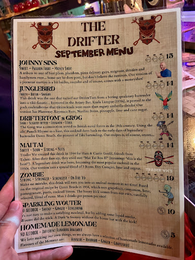 Read moreThe Drifter is a Tiki bar established in Ghent by a passionate of cocktails and the Tiki culture. The new location makes it the biggest Tiki bar in Europe! Every cocktail is meticulously thought and with a little touch that makes it very unique and different from the other cocktail bars. Plus each cocktail has its own glass. The decoration, that will reminds you of a tropical beach, is transporting you to another world, making your experience ever more memorisable. Several spaces are available, giving you the choice of the atmosphere. The cocktails never fail to impress and the atmosphere is very relaxing. For the people who are not into cocktails, they also have a nice selection of local beers, wine, and homemade lemonade. And for the amateurs of classic cocktails, the bartenders can make you the drink of your dreams. They also have their own old fashioned on the card. In conclusion, this is probably the best...