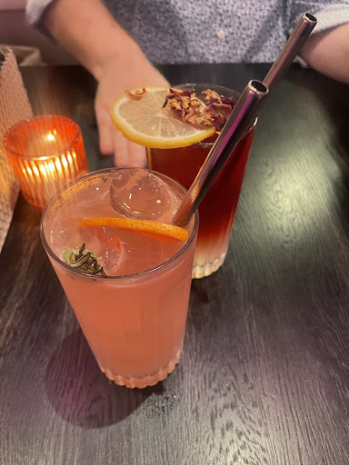 All staff was very friendly. It took about 5 min to the cocktails to arrive and probably 15 min for the food. I had a pink paloma but cocktail 14€. I must say it was the one of the best drinks that I had in the past year. My husband had a Bourbon sweet tea, 11€ also very good! Now for the food, oh how I missed good fried chicken burger😭now I’ve finally found a place in Gent that does it. It was not salty, not heavy, just perfect. Chicken bao also very good! Both 17.5€. Fries just ok/normal.
