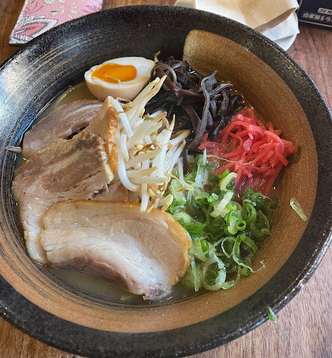 We ordered the following dishes: Edamame: decent quantity for a starter dish; nothing much to add as it's straight forward Japanese fried chicken bao bun: The bun lacked the delicate fluffiness I had anticipated, and the texture felt dense and slightly undercooked. The filling helped to redeem it a little. Overall it is not bad but it can be improved. Miso Tonkotsu Ramen: The broth lacked the depth and richness expected of a tonkotsu-based dish, leaving the overall experience rather lackluster. There was not enough broth but it's also hot outside so that was a negative thing that served a positive purpose. The noodles were well-cooked and the toppings were generous. The pork was very good and it gives that melt-in-your mouth feel. The one thing I disliked the most was the addition of pickled ginger. Normally it add a nice, refreshing twist but given the quantity they put plus the fact that the broth itself lacked flavor (especially given that they boast it having been cooked for 12 hours), it was overpowering and in the end it's all you can taste so I advice anyone ordering to put it aside or eat only the quantity you want per spoonful. Pork & Kimchi Mazemen: My friend said it was not bad but her comment was that it was dry. Normally Mazemen lacks broth but there's still some sauce but hers was dry in the end and they also served her food not warm/hot enough but only room temp. Cold Yuzu Hiyashi Chuka: Tomatoes are not typically used in a noodle dish especially not cold noodles and so it made the dish feel more like a pasta/noodle salad than actual cold noodles. The sauce was good though and it's something we would still recommend you to order just maybe ask them to take out the tomatoes.