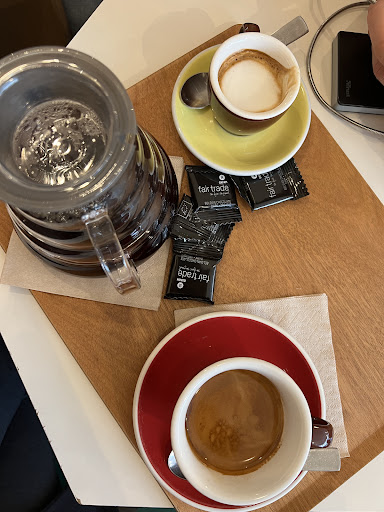 Read moreA friend who visited Ghent last year recommended me this little hidden gem. I had a spledid time. I went there twice. The first day I had two flat whites and they were just perfect. I got served by the same barista as my friend! What are the chances?! And two days in a row. ;-) The barista was a nice fellow and remembered my friend as well. We had a nice chat, he shared some tips and tricks and he took the time to explain all the coffee. On Monday I went for a tea, they have a large tea selection. It was a bit more busy, but he still took the time to help me out with some questions. I'm taking back some coffee and tea back home. It's a bit hidden, but...