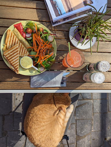 Read moreDER Geheimtipp schlechthin, hier ist alles perfekt - vom Essen über den Service bis hin zum Ambiente. Der Kellner ist so unglaublich freundlich und hat so eine entspannte, positive Ausstrahlung, dass wir uns sofort wohlgefühlt haben. Seine gute Laune war so ansteckend :) Auch das Essen ist super, besonders die Pfannkuchen sind so süß mit den Motiven, ein echter Hingucker. Auch die Salate haben so gut und erfrischend geschmeckt - besonders der mit gegrillter Aubergine. Eine perfekte Balance an Geschmäckern, die in dem Salat zusammentreffen und sättigend sind, das perfekte Essen für den Sommer! Extrem gemütlich, so ein Wohlfühlort, ich empfehle jeder Person, diesem Café einen Besuch...