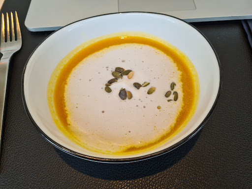 Service was pleasant, and fast. We went at lunch and ate the menu of the day. Even though I'm a big portions person, and would prefer larger portions, the quantity was reasonable. Entry salad with fresh salmon was very tasty, main dish of beef with potatoes was juicy and soft, potatoes where quite crunchy. Again, my only negative point was...