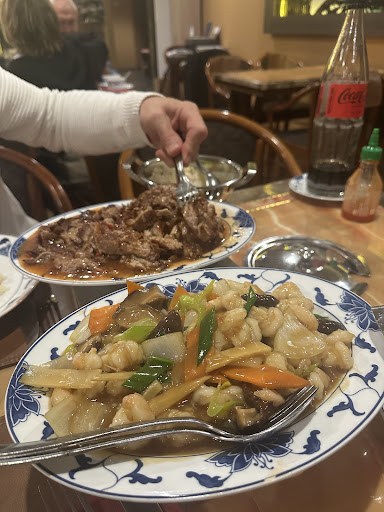We arrive at 18:30 on a Sunday evening, we had back then 8 tables ahead of us and everyone was getting a table. The waitress was extremely nice however from what we saw the demanding for orders either take away either customer was too hight for the their capacity. We provided our order, starters, dumplings and Chinese crepe and as main dish we order two different dishes, one with shrimp another one with meat. The phone was ringing all the time, more people were entering the restaurant to get a table and we were 12 in total. We got our drinks very quickly however we noticed that everyone was getting tired of waiting.