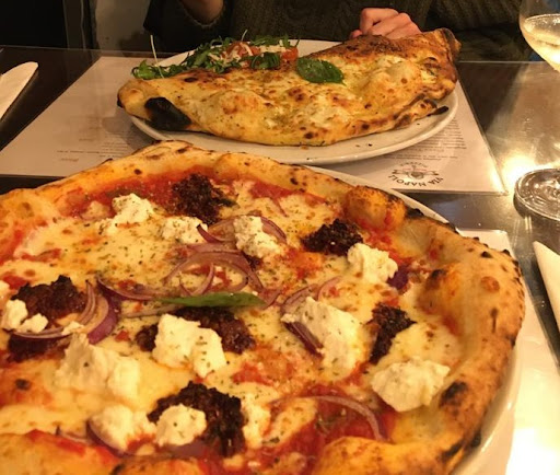 Small and cosy family business with real authentic Neapolitan-style pizza (you recognize the real one because it is bigger than the plate it's served on đ). The menu already contains a wide variety of pizzas to choose from, but I decided to take the pizza of the week with gorgonzola, nduja and burrata of amazing quality, paired with a good Nero d'Avola red wine and followed by a Sicilian cannolo as dessert. Even though the place was small and we were a large group of 20 people, service was very fast...