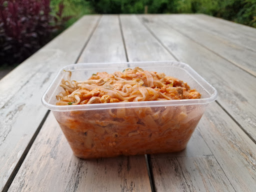 Ik kwam hier voor een 1ste ervaring Pad Thai.. verrassend genoeg. Deze was ook weer zeer lekker. Hier zijn de noedels dikker dan omliggende zaken wat wat variatie brengt tussen de verschillende Pad Thai uit de omgeving. Ik verschoot even van de prijs voor mijn bestelling maar je krijgt er bijna een kg voor waar je even zoet mee bent. De smaak was zeer goed en was veel minder vettig dan andere waar er een bodem vet in de schaal ligt. Goede variatie van groenten. De gecrushte pinda's krijg je in een apart potje, net als de limoen. Als extra krijg je nog kroepoek die in een hermetisch afsluitbaar zakje, dit zijn DE kleine details waaraan je kan zien dat de mensen die hier werken zich bewust zijn van kwaliteit. Zoals velen weten krijg je deze meestal in een dun onsmakelijk carrefour plastiek zakje met een knoop in. Deze Thai is zeer goed en ik kan deze zeker aanraden voor een goede Pad Thai voor mensen met een grote honger! Bedankt voor deze ervaring en de topkwaliteit! Ps. De ingang is langs de achterkant. Het deur systeem om de mensen met volle handen buiten te laten is corona proef en een uitvinding op zich.....
