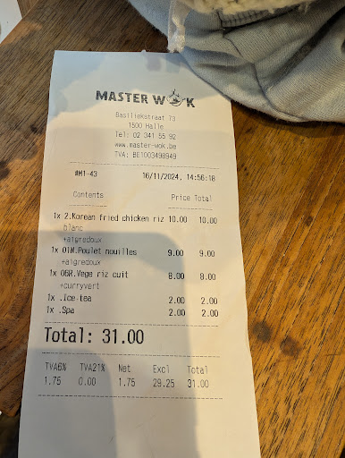 I visited Master Wok with my partner and we both ordered fried noodles —I had the vegetarian option with red curry, and he went for the chicken with teriyaki sauce. The owner took the time to explain the spice levels to us in both English and Dutch, and even adjusted the sauces to match our preferences. The food was prepared quickly, the portions were generous, and everything tasted great. It’s refreshing to find such good quality food at a reasonable price, especially in the heart of the city.