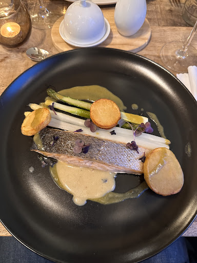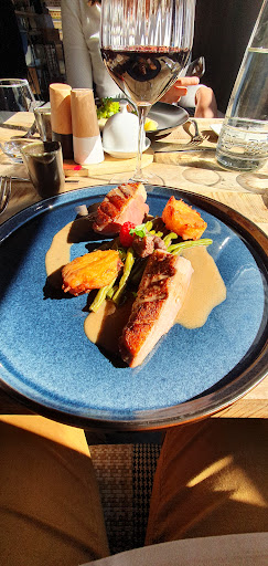 Read moreVraie déception. Due au corona ? Je ne sais pas. Bous avons mangé dehors sur une terrasse aménagée pour le corona je pense. Minuscule table, collé contre une palissade, une marre de café qui brule à mes pieds pour les guêpes et collé aux autres table (corona es-tu là ?) Bref situation pas géniale pour un resto. Tout se suit, mise en bouche, entrée, plat ... tellement vite qu on est encore en train de boire notre apero, qu on reçoit notre vin 🍷 😳 30 min top chrono. Bref gustativement pas exceptionnel en vu du rapport qualité prix. Très cher pour ce que c est. Le plat ressort du lot ( filet pur de porc 😏) vers 21h la patronne met la musique à fond de quoi gâcher ce moment censé être reposant bref une soirée bouclée en 1h30, avec une addition salée pour pas grand chose dans mon ventre. Déception. 2 etoiles parceque le personnel...