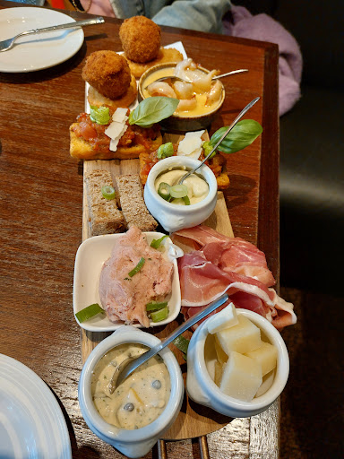 Read moreHeel mooie zaak op de markt, interieur is mooi ingericht en er is een ruim terras bij waar het aangenaam zitten is. Bediening is heel vlot en vriendelijk en het eten was lekker. Het enige puntje van kritiek daaromtrent is dat de slaatjes een beetje eentonig zijn. Als je een slaatje met scampi vraagt krijg je letterlijk een halve krop sla, drie kerstomaatjes en 7 scampi's met basilicumboter. Dit was zeker lekker, maar toch miste ik wat variatie in groenten. Wat komkommer, worteltjes of paprika's of rauwe bloemkool zou niet misstaan om het wat minder saai te maken. Bijgevolg vond ik de gerechten dus ook wat aan de dure kant voor hetgeen je...