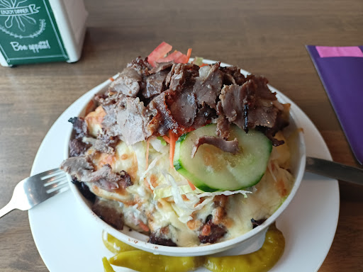 Zonder twijfel het slechtste dat mijn vriendin en ik ooit hebben gegeten. We bestelden beiden een kapsalon met kip, dus natuurlijk verwachtten we ons niet aan een luxeslaatje. Maar dit was buitengewoon walgelijk. Een hoop frieten die wak waren, wat kip en dat overgoten met een kilo kaas. Geen groentjes, geen saus, ...