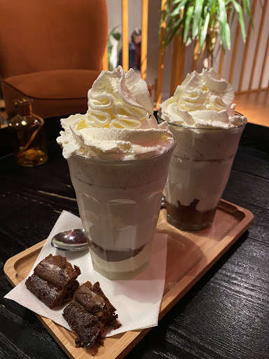 I went here on a Sunday afternoon for a drink. I got myself a chai latte with cinnamon (an autumn drink) but it was waaay too sweet for me. (I don't eat a lot of sweet things myself. If I had ordered a chocolate milk, it would have been with dark chocolate.) There were two tiny brownies that came with the drink and those were really good! I would recommend to get something with chocolate because it all looks very appetizing and smells delicious! If you like sweet drinks and cinnamon then the chai latte would be perfect for you....