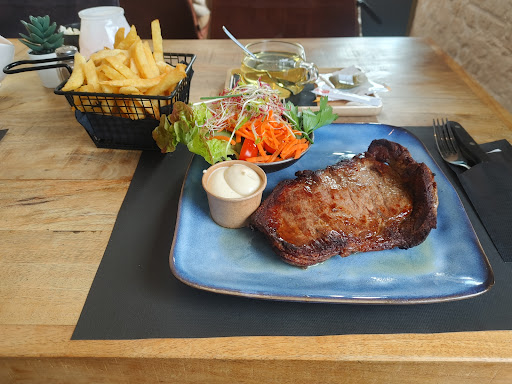 Dit was de eerste, maar wellicht ook laatste keer dat we hier zijn geweest om iets te eten ! Het personeel was weliswaar vriendelijk, maar alles duurt te lang en naar onze afsluitende drank hebben we opnieuw moeten vragen. Deze bestelling was wel ingegeven in de kassa, maar werd blijkbaar niet klaargezet ? Inmiddels had ik al gemerkt dat sommige medewerkers ( achter de bar ) liever wat stonden te praten ipv hun taken uit te voeren... Wat betreft het eten wil ik graag vermelden dat het toch vrij lang duurde voor het geserveerd werd, terwijl het toch niet overdreven druk en de bestelling niet te gecompliceerd was ! Het rundsvlees bij de Mixed Grill bleek te hard gebakken. Ook al was vooraf duidelijk gevraagd om het vlees niet te hard te bakken of grillen ! De zogenaamde Chateaubriand lijkt ons eerder van Supermarkt kwaliteit en dus die naam niet waardig ? Bij 1 van beide zat er trouwens een stevige pees in ! Deze waren wel correct gebakken en smaakvol gekruid. Tenslotte wil ik mijn ongenoegen nog uitdrukken betreffende de portie frietjes die we kregen ! Een amper iets meer dan de helft gevuld schaaltje voor 3 personen !! Dit kan toch werkelijk niet ? We hadden dus amper iets van friet voor ieder van ons, terwijl we daar toch 3 euro per persoon voor moeten bijbetalen ? Wanneer we dit aangaven en vroegen om iets meer frietjes, werd ons simpelweg verteld dat dit normaal is en we nogmaals supplement moeten betalen !! We kregen vervolgens nog een kleine portie, die we nadien dus ook moesten betalen ! In totaal moesten we dus liefst 12 euro betalen voor een hoeveelheid frietjes, die net iets méér dan een portie voor 1 persoon waardig is !! Dat vind ik een regelrechte schande ! Bij meerdere andere zaken hoef je niet eens een supplement te betalen voor wat extra frietjes ! Waarom ook géén kroketjes trouwens ? We hebben nog overwogen om een Irish Coffee of dergelijke te nuttigen als afsluitertje, maar gezien de stevig overdreven prijs van 12 euro, hebben we hier maar van afgezien ! Dat zijn prijzen voor zaken van een hoger niveau hoor ! Het is dan nog de vraag of je dan misschien ook maar een half glas krijgt... Slechte ervaring...