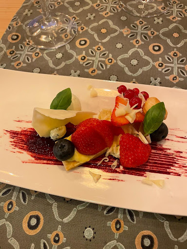 Familiediner in een zeer aangenaam kader Een laat Nieuwjaars diner met 15 familieleden op zaterdagavond. Fantastische locatie om 'onder ons' te zijn zonder andere klanten. Rustig dus, gezellig bij een warme kachel, goeie akoestiek ook. Het diner was top! Ingrediënten van prima kwaliteit, supermooie presentatie, combinatie van lekkere niet alledaagse smaken. Van apero tot dessert en koffie waren het originele en zeer smakelijke gerechten. Voldoende passende wijnen en waters, uitzonderlijke vriendelijke bediening én kok (open keuken) aan aangenaam verrassende...