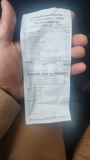 Na een fikse wandeling met ons hondje besloten we om te gaan lunchen in het Schipke aan de Nete. We mochten niet binnen met onze hond ( alle begrip voor ) op het terras dan maar. Mocht ook niet ( wat minder begrip voor, maar ja.....) Naast het restaurant was er een terras ingericht voor mensen met een hond ( gelukkig met mooi uitzicht ) We konden onze bestelling doen via een QR code. Wat bleek nu ? We konden op het " hondenterras " niet lunchen . Het was een andere kaart. Enkel borrelhapjes, drank en ijsjes. Nu zijn we al veel op restaurant geweest met onze hond, zowel in België als in het buitenland . Onze hond was steeds welkom en wat belangrijker is, de kaart was voor iedereen hetzelfde !!!Op de vraag of we een spaghetti konden eten , kregen we als antwoord dat de keuken dit niet kon bolwerken ! Dit lukte wel in het restaurant en op " chique " terras ! We moesten ons maar tevreden stellen met wat gefrituurde borrelhapjes ! Conclusie : " met een hond groot of klein kan je alleen voor borrelhapjes en een drankje in het Schipke zijn. Voor lunch of diner, breng je hond niet mee of zeg liever doodgewoon ... Nee ! Spaar jezelf veel ergernis en wacht tot je hond er...