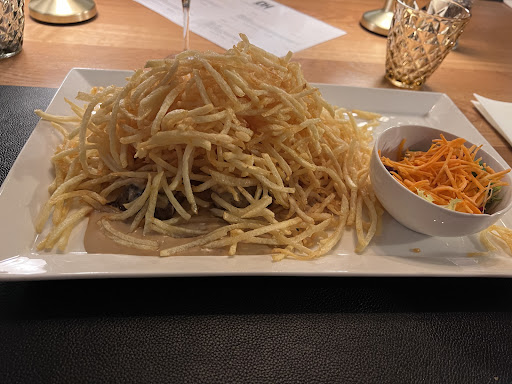 Very nice & cozy restaurant, even though a bit pricey. Food was great and the portions were also decently big! For starters, I had the swordfish which was very tasty! I took the pheasant for main dish, which was very well cooked and just very good! For dessert I took the Tiramisu which was like one I never ate before, and it was great! A small remark is the fact that some of the waiters gave me a very "rushed" feeling for ex. I didn't finish my dessert yet and they almost took it away haha. But overall, I had a very pleasant experience and I can surely recommend it! Also, I Would love to come back...