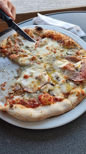 Ma première expérience n'était pas très convainquante, une pizza lili qui sur papier promettait le nirvana à mes papilles mais qui dans les fait se noyait sous le poids de tte cette mozarella. Ce fromage ayant peu de goût mais bcp de texture procurait, en trop grande quantité, une mâche assez désagréable et atténuait trop fortement le goût des autres aliments... De plus dans cette optique je trouve que de la pancetta serait plus à même de rehausser le goût de l'ensemble à la place de lardons. La pizza était cependant largement assez gourmande que pour permettre au gros mangeur que je suis de retenter le coup. Cette fois la c'était une pizza parma et je fut déjà plus satisfait. La pizza était tt aussi gourmande mais beaucoup plus équilibrée, tt les ingrédients que l'on nous promettait possédaient la place qu'il leurs revenaient... excepté les artichauts. En effet le bémol c'est la présence non pertinente, selon moi, de l'artichaut. Du moins sa présentation, assez brut et en très gros morceaux. L'artichaut est un légume au goût assez fort et particulier je pense, encore une fois selon moi uniquement, qu'il mérite un traitement plus subtil. Et enfin j'ai retenter le coup (pcq jamais 2 sans 3) avec une bianca parma et la... Quel plaisir! L'une des 5 meilleurs pizza que j'ai mangé de ma vie. Toujours aussi gourmande et ratiasiante mais cette fois l'ensemble était non seulement très gouttu mais également très harmonieux et subtilement original... Ils m'ont convaincu que ne pas mettre de sauce tomate avec une parma est la clef qui nous permettra d'ouvrir les porte du paradis de la pizza. J'avais peur que le tout soit trop sec mais la crème de balsamic ampute le probleme avant qu'il n'apparaissent et pourtant j'avais peur que le balsamique donne alors trop de goût mais en bonne quantité c'était parfait. Les tomates pas trop petite et très bien cuite. Bon jambon de parme. Roquette en quantité ni trop ni trop peu. Le seul petit hic si il en faut un, peut être pas assez de parmesan. Donc voilà pour finir je met 4 car les 2 premières n'était pas parfaite et je dirais ceci: si ce qui vous intéresse c'est principalement de manger beaucoup allez y les yeux fermés. si le goût vous importe mais sans le sacrifice de la satiété je vous conseille de bien choisir...