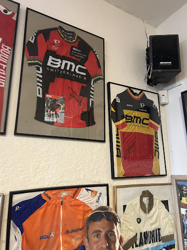 Een zeer gepassioneerde 'persoon', hij kende Frank VDB persoonlijk. Wij zijn als wielerclub gedreven 🇧🇪-koers-fanaten en vonden het heerlijk om samen de keuvelen over deze coureur. Het feit dat als een vriend van VDB zo dichtbij hem stond was het aan de lippen hangen over zijn unieke band met hem. Je kan er bovendien rondwandelen in het cafe waar tal van verschillende shirt hangen zowel van andere coureurs als van VDB. Je bewonderd een oude fietskader en tal van andere persoonlijkheden.