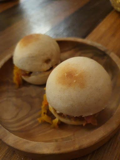 The menu was tasty. Each course was well-explained and accompanied by a delicious wine. (Loved the Spanish one with the sea bass). Lots of fish and seasonal produce. Very well thought-out flavors and diversity. A great extra: the small dessert bites with the coffee.