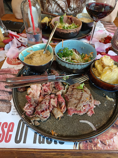 Read moreEen reactie op de onverlaten reactie van de heer L. Duc. U lijkt mij nu net zo'n persoon/ gast die het zeker wel lekker vind, maar nooit tevreden is. U laat zich heerlijk verwennen door de gastheer en het personeel door hun culinairehoogstandjes. Zoals ik uw verhaal inschat bent u eigenlijk iemand waarbij het nooit goed is en daarbij uw onverlaat laat merken door of korting te krijgen of gerechten van de rekening te schrappen om daarmee volgens u uw punt te maken. Uw naasten zullen weinig tot niets gezegd hebben om u als baas, om wie het gaat, van het gezelschap maar het woord te laten doen. Zij zullen vast niets tegen u in te brengen hebben. Zo schat ik uw verhaal in en u als persoon. Zeker als u ook nog in bepaalde toon veranderd. U krijgt in deze, helaas ook dezelfde toon terug van Steakhouse, waar u eigenlijk niet van gediend bent en niet had verwacht. Diegenen die met u mee waren zullen uiteraard uw woorden en stampij hebben moeten accepteren en het met u eens moeten zijn. Maar zoals u zich hier ook wegzet zou ik als familielid niet meer met u uit eten willen al zou u een nog respectabelere leeftijd hebben. Aangezien er altijd wel iets aan te merken valt op bepaalde gang van zaken heb ik de recensies gelezen en die zijn best positief. Ik zou er gezien de foto's en de filmpjes zeker wel een hapje willen eten. En alles is bespreekbaar en van onvolkomenheden kan iedereen leren, behalve u .... Waarschijnlijk.