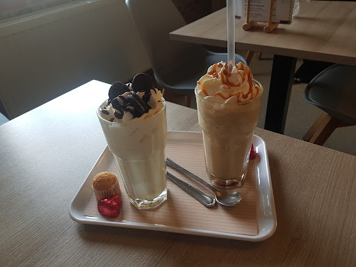 Lekker ontbijt! Het ontbijt begint met een glaasje echt zelfgeperst sinaasappelsap gevolgd door een fruitslaatje met Griekse yoghurt apart en muesli apart. Daarna komt het broodmandje: witte en grijze pistolets, volkorenbroodjes, bruine boterhammen, sandwiches, sterpistolets, mini-croissants en mini-chocobroodjes. Beleg: kaas, hesp, americain préparé, huisgemaakte eiersalade (met stukjes ajuin, toch niet echt mijn smaak), huisgemaakte tonijnsla, huisgemaakte confituur, brie, smeerkaas, mini-Nutella-chocopasta's. Zeer lekkere koffie! En de butterscotch-koffie vond mijn vrouw hemels! Het is er gezellig ingericht en de bediening is vriendelijk en attent! We hebben er...