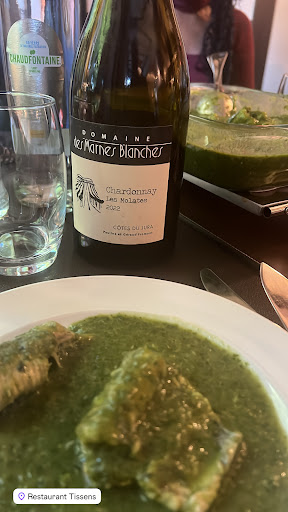 La cĂŽte Ă lâos chez TISSENS est rĂ©putĂ©e, on la dit tendre et goĂ»teuse. Câest une viande dâorigine belge (mais pas du bleu blanc belge). Et bien câest un fait, excellente viande, saignante comme on lâa demandĂ©, avec beaucoup de goĂ»t. Malheureusement câest trop, et nous nâarrivons pas au bout de cette piĂšce de boeuf. 27⏠par personne, accompagnĂ©e dâexcellentes frites maisons, Ă volontĂ© (on a du dire stop). Lâaddition de presque 90âŹ, avec un unique verre de vin rouge et une 1/2 bouteille dâeau, est je pense un peu salĂ©e. Et je dĂ©sapprouve le fait que la sauce bĂ©arnaise maison, soit facturĂ©e en supplĂ©ment 2 x 2.50âŹ. Une excellente sauce par contre.