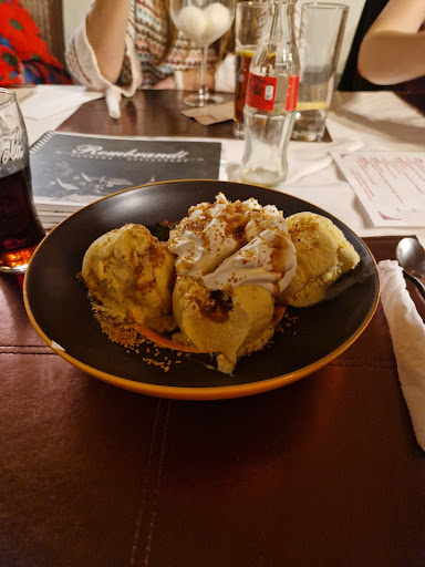 ● Het eten ● Het eten is er lekker, en alles is prachtig geserveerd, ik heb enkel een hoofdgerecht genomen (ribbetjes met frietjes), en ik moet zeggen. Ik had meer dan genoeg. 2 grote ribben (en moest dit niet volstaan de ribbetjes zijn aan volonté, je mag dus bijvragen!). Alles is mooi geserveerd, frietjes per persoon in een potje, de groentjes (sla, tomaat, komkommer, boontjes, rode kool, ...) in een apart potje. Alle gerechten zoals: spaghetti, croque, brochette, dame blanche, ... worden één voor één proper gebracht. Kortom hier ga je zeker niet met honger buiten!