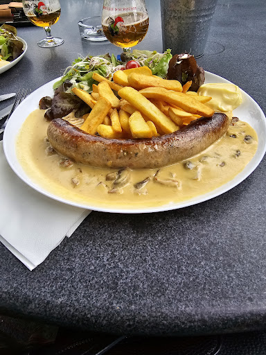 Première surprise : service unique à 18h30, ce qui est plutôt étonnant lors de ce weekend festif de la grande messe du VTT à Houffalize! Le restaurant n'était pas bondé, nous sommes arrivé à l'heure, mais, malgré ça, on a attendu notre Chouffe prés de 30 minutes... Pour ce qui est de la qualité du repas, rien à dire de spécial : le rapport qualité/prix est tout à fait correct. Vers 19h30, si tu as envie d'aller aux toilettes, c'est fort dommage : Dame Pipi fait le ménage, du coup, il faut trouver une solution alternative (pour ma part, je suis allé dehors). A 20h00, au moment de régler, le patron te sort une pancarte où il est indiqué "Paiements individuels interdits"... Toi non plus, tu ne comprends pas le message? Alors je t'explique : on arrive à 15, 1 paye l'addition, et après, on se débrouille entre potes... Je n'avais jamais vu ça nulle part!