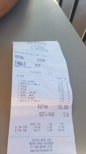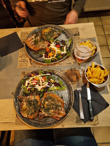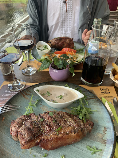 Read moreJ'ai mangé hier soir en terrasse de ce restaurant bien sympa. J'étais de passage, en vadrouille, seul, et souhaitais profiter du temps magnifique et de ce que la nature nous propose. Ce fut un moment divin. Les patrons sont super sympas, c'est sûr, mais j'ai aussi un grand merci à adresser à une jeune serveuse, blonde, qui fait magnifiquement son travail. Pour en venir à la nourriture, j'ai voulu goûter les croquettes au fromage, puis manger un morceau de viande. J'ai opté pour l'entrecôte, ... belge car la viande argentine ne me dit rien. De toute façon c'était magnifique, et les frites tout à fait louables. J'aurais voulu prendre un dessert, mais la quantité de viande que l'on m'a servie ne laissait plus de place. J'ai aussi découvert la Carlsberg sans alcool. Je la place en première position. Donc en résumé un endroit magnifique, une nouriture belle, bonne et abondante, et un service...