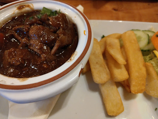 Kind service, terrible food. The carbonnade tasted like ketchup diluted with beer, the spaghetti arrabbiata was overcooked, the sauce came right from the can. The bread tasted like soap (probably came next from the wash basin). The trout and the vegan burger was ok. The service was nice, the waitresses were really kind and welcoming but it didn't make up for the poor quality food. As a response to the place's reply: Yes, I am quite sure that we were there. The point of the on-line review is that it's on-line. Since we left 90% of the carbonnade and the spaghetti untouched, we thought we passed on the message that those were poor. Even if we told this in person, I would have written this review. In my review, I didn't mention the other mistakes as a courtesy, because you were really nice. Please take our critique as a possibility for improvement and don't dismiss it as "untrue"...