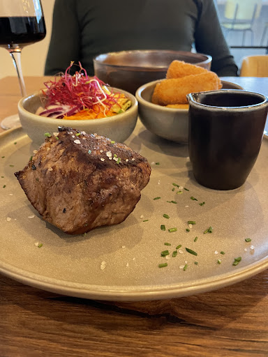 Read moreTop-bistro. Verwacht hier geen doordeweekse brasserie keuken maar wel een verfijnde keuken. Bij aankomst wordt je verwelkomd met een hapje opgelegde groentjes en gegrild zuurdesem brood met een spread van tomaat. Wij startten met een aperitief van het huis en Wiskey Sour. Als voorgerechtje volgde cevice van geelvinmakreel en aubergine. Voorgerechtjes worden in tapasvorm geserveerd wat een aangename verrassing is. Als hoofdgerecht volgde Saltimbocca kip met risotto en diamanthaas met versgesneden frietjes. De porties zijn ruim maar toch vol smaak. De avond sloten we af met een mooi afgewerkt Manon ijsje. Het industriële interieur past bij de omgeving. Aangenaam terras. Heel smaakvolle keuken, prima bediening. Een aangename nieuwkomer...