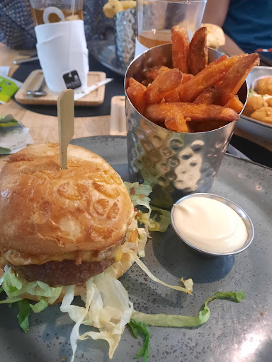 Read moreThe service is horrible, the patio is very nice, and you can't get vegetarian fries or any veggie side dish, the burger tasted amazing. The server didn't write down any of our orders so the first time it came out wrong. I ordered a veggie burger cancun without cheese and it came with cheese. So when my burger finally came out correctly my friend already finished his. All fries are cooked in beef fat, which is a shame because they have so many veggie burgers so you'd think they would cook in plant-based oil. So I had to get a burger without fries. When I finished it I was still hungry so I tried to order another one but for 15 minutes there was no service on the terrace. I went inside to find a server, they were both chit chatting with another guest. When I asked if there was still service on the terrace they followed me and both cleared our table. They made some sarcastic comments which were louder than my order for another beer, so this order was never received. I tried to get again the attention of the servers to order this beer. Awful service, nice burgers, nice location, but unfortunately no...